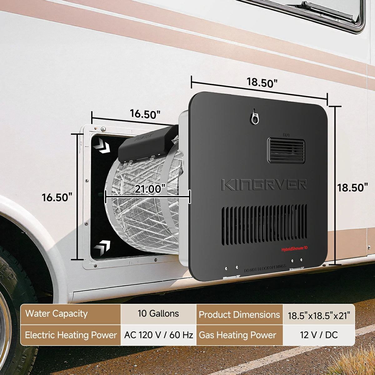 KINGRVER 10 Gallon RV Water Heater | HyBridShower 10 | 1440 W Electric Dual Fuel | 12000 BTU Propane Hot Water Heater | Bulit-in Magnesium Anode Rod