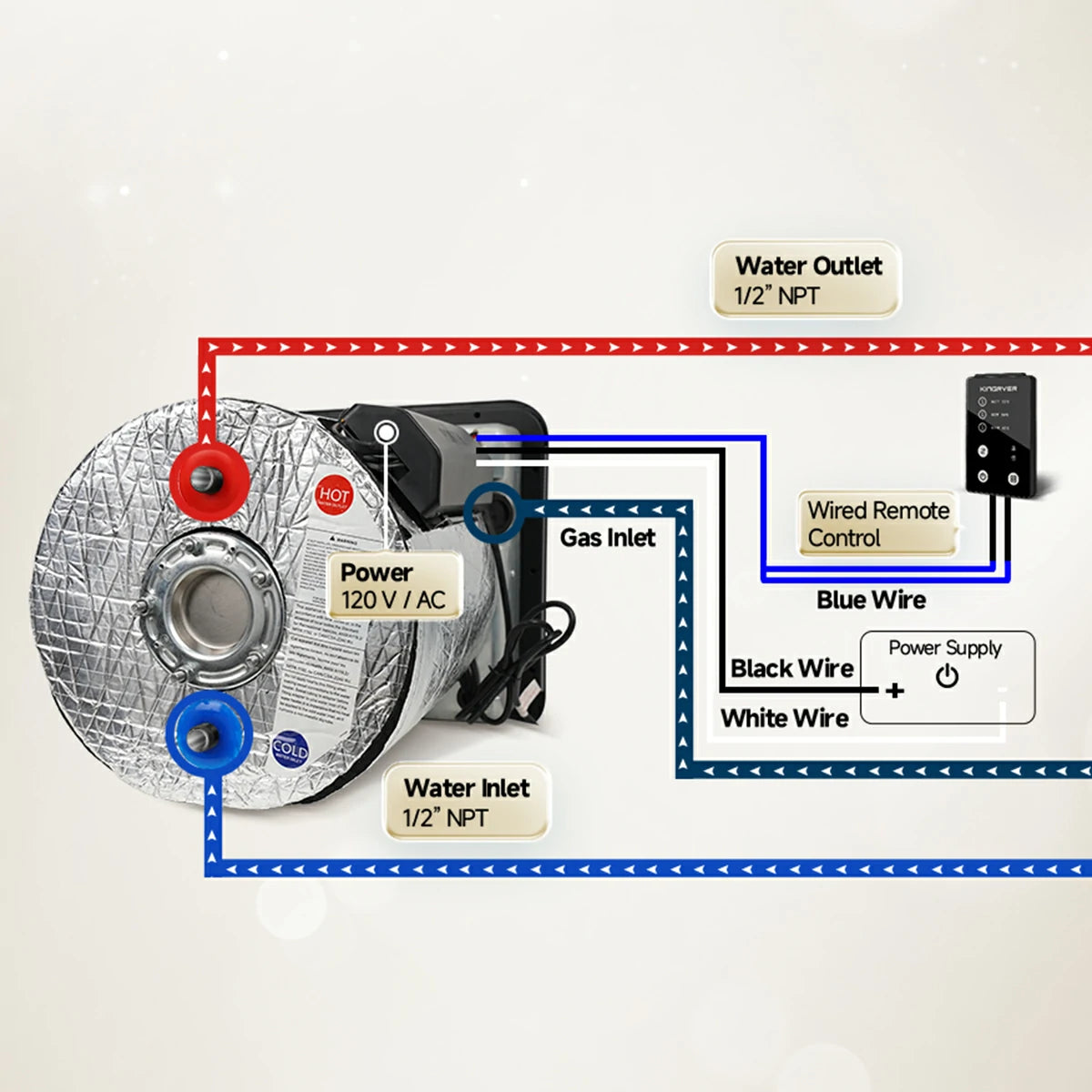 - DUAL FUEL, 3-MODE RAPID HEATING: The KINGRVER RV tank water heater offers both a 12,000 BTU propane heating option and a 1,440W electric heating mode. This dual-energy combination provides three versatile modes: gas-only, electric-only, and combined heating. At full power, it heats water twice as fast as traditional tank units, significantly reducing the waiting time for hot water.
