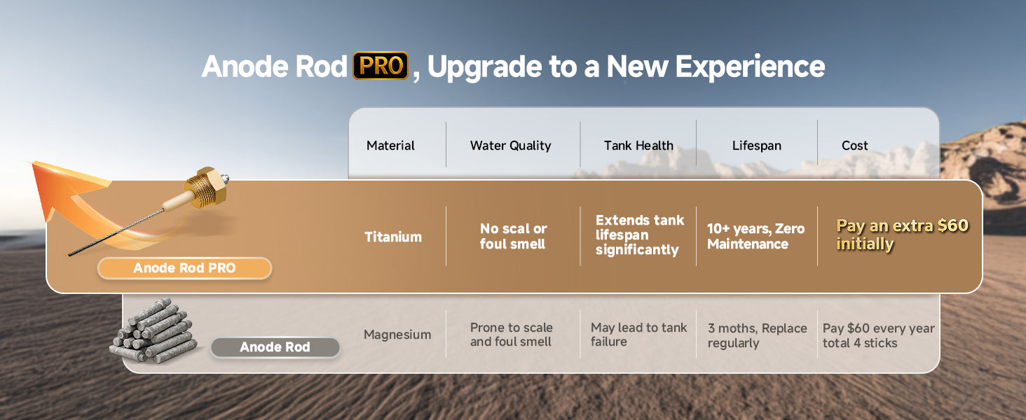 - More durable, low maintenance:With Lifetime Anti-Corrosion Anode Rod