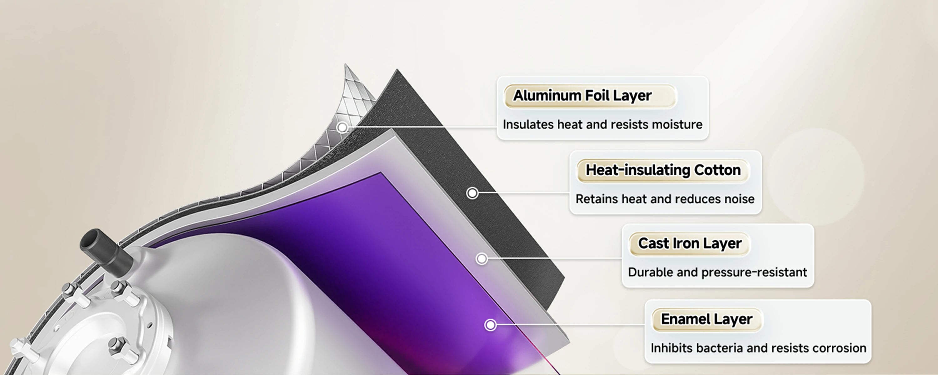 This dual-energy combination provides three modes: gas-only, electric-only, and combined heating. Flexible heating tomeet different water usage needs