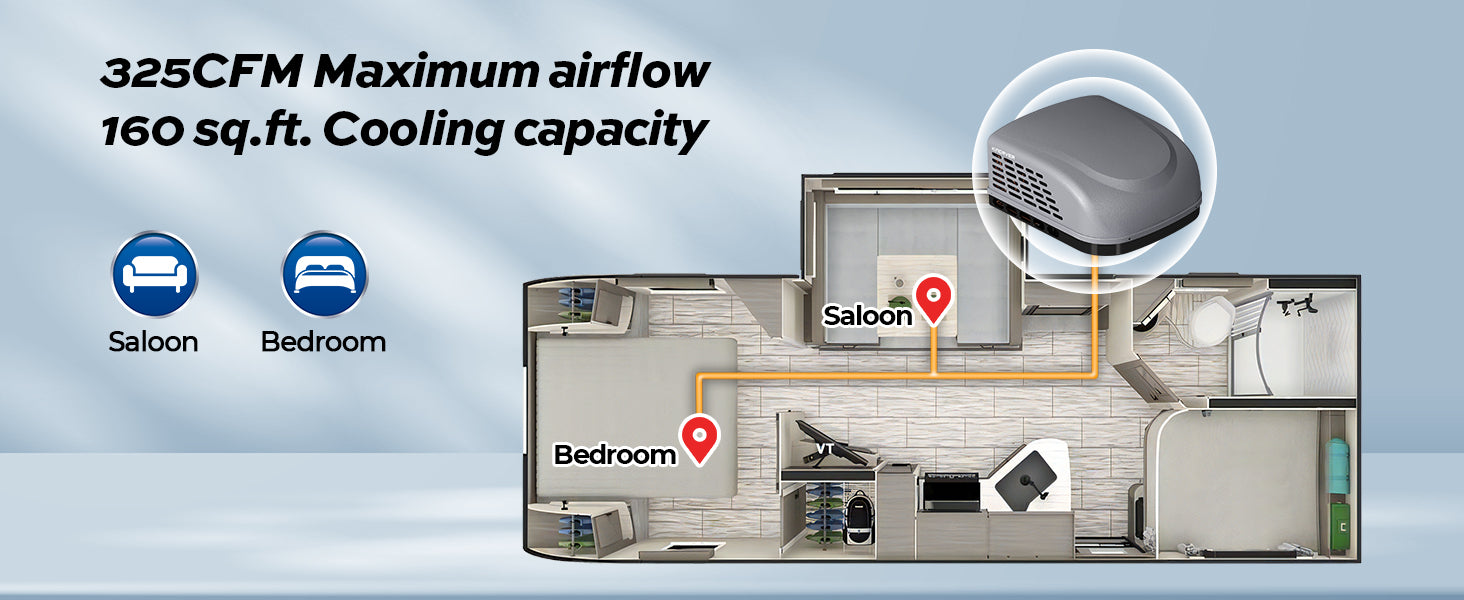 - High-Efficiency Energy: KINGRVER RV AC optimizes fan and temperature control for strong cooling, balanced energy use, and lower costs.
