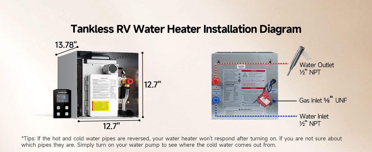 - Compatible with All RVs — The KINGRVER RV tankless water heater opening size is 12.7" x 12.7". The fitting door kit is available for purchase in 3 optional sizes: 15" x 15", 15" x 18", or 18" x 18". It is easy to replace Suburban, Dometic, and other RV tank/tankless water heater. We also offer customizable EVA Filling Blocks to fit oversized cutouts, ensuring stability and preventing movement of the water heater. They are waterproof and corrosion-resistant. Check our bundles for combination purchase options for easier refitment.